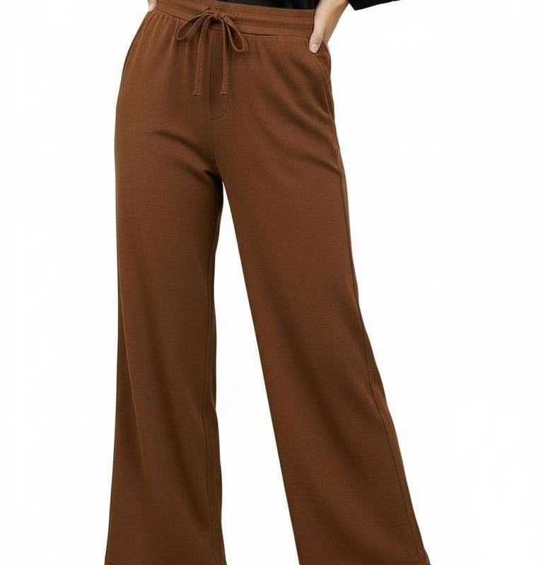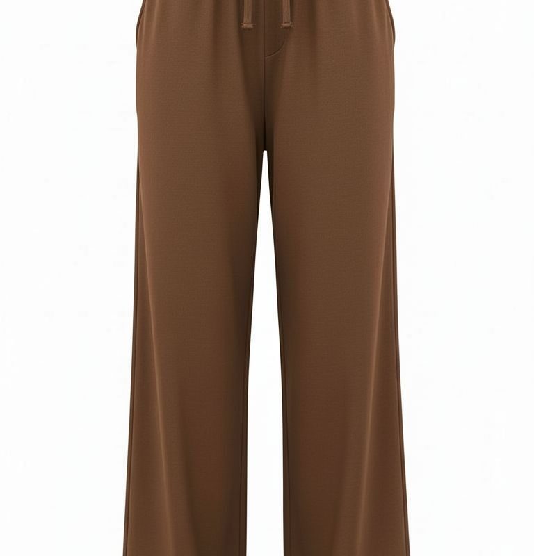 Luźne spodnie dzianinowe z szeroką nogawką brąz