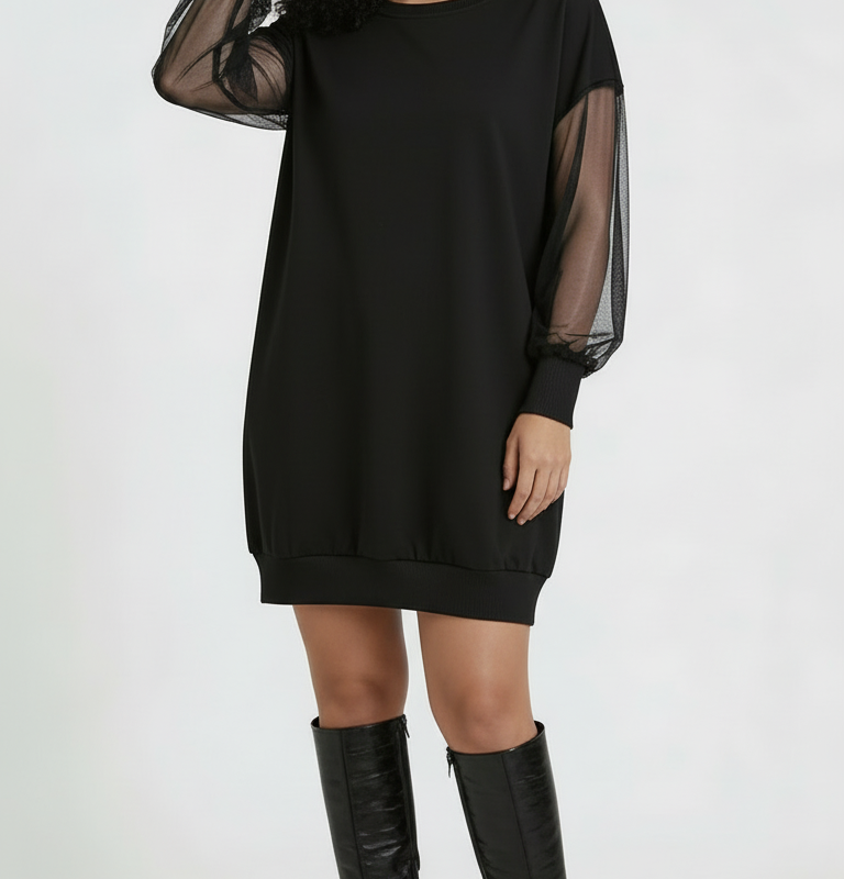 Sukienka tunikowa z transparentnymi rękawami