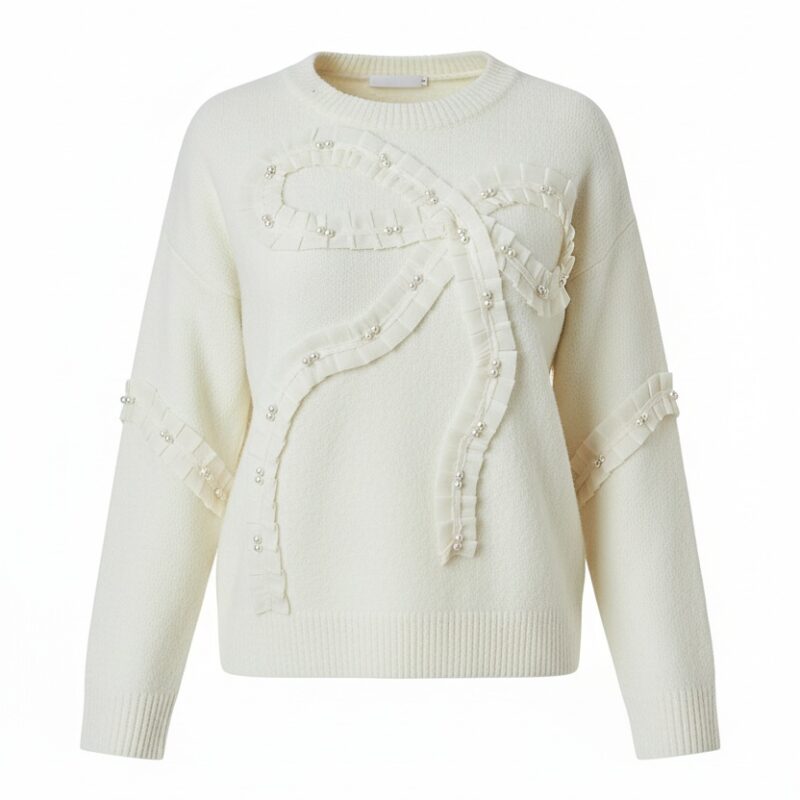 Sweter z dekoracyjną aplikacją i perełkami