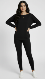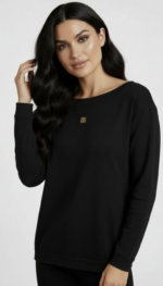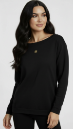 Klasyczna czarna bluza o czystej formie, która łączy codzienny komfort z eleganckim minimalizmem.
