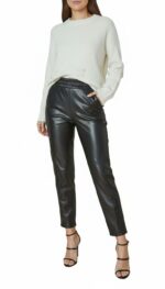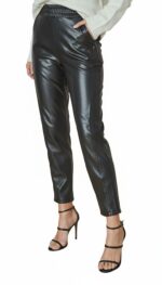 Czarne spodnie z eko-skóry, które łączą nowoczesny wygląd z wygodą codziennego noszenia.