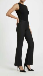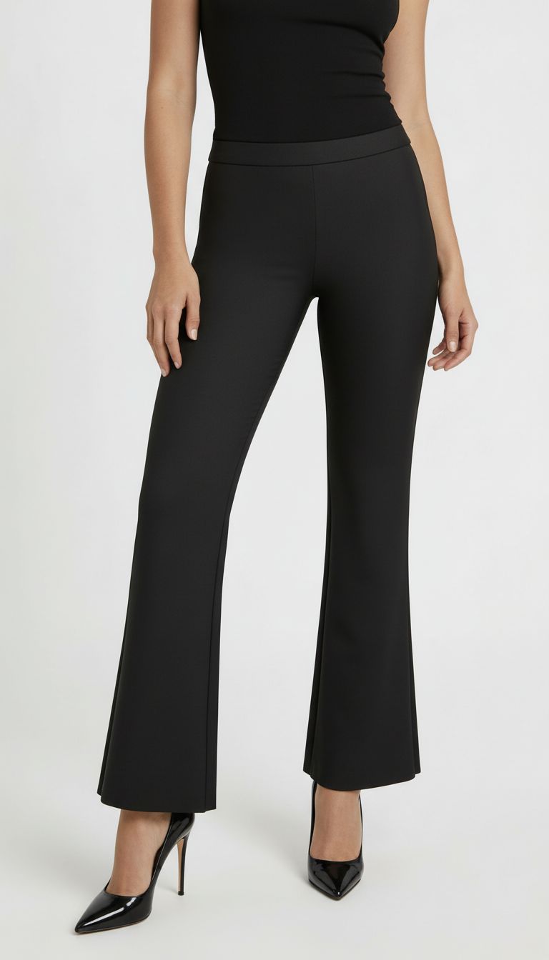 Klasyczne spodnie o prostym kroju z delikatnie rozszerzaną nogawką, które elegancko porządkują sylwetkę. Wykonane z miękkiej, elastycznej tkaniny, dobrze dopasowują się do ciała i zapewniają komfort noszenia przez cały dzień.